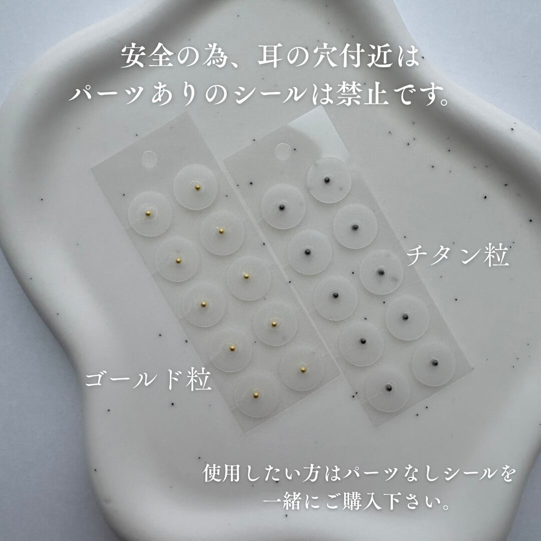 シール部分に付いているツボ押し用の粒を取っていただくとシールピアスとしてもお使いいただけます。